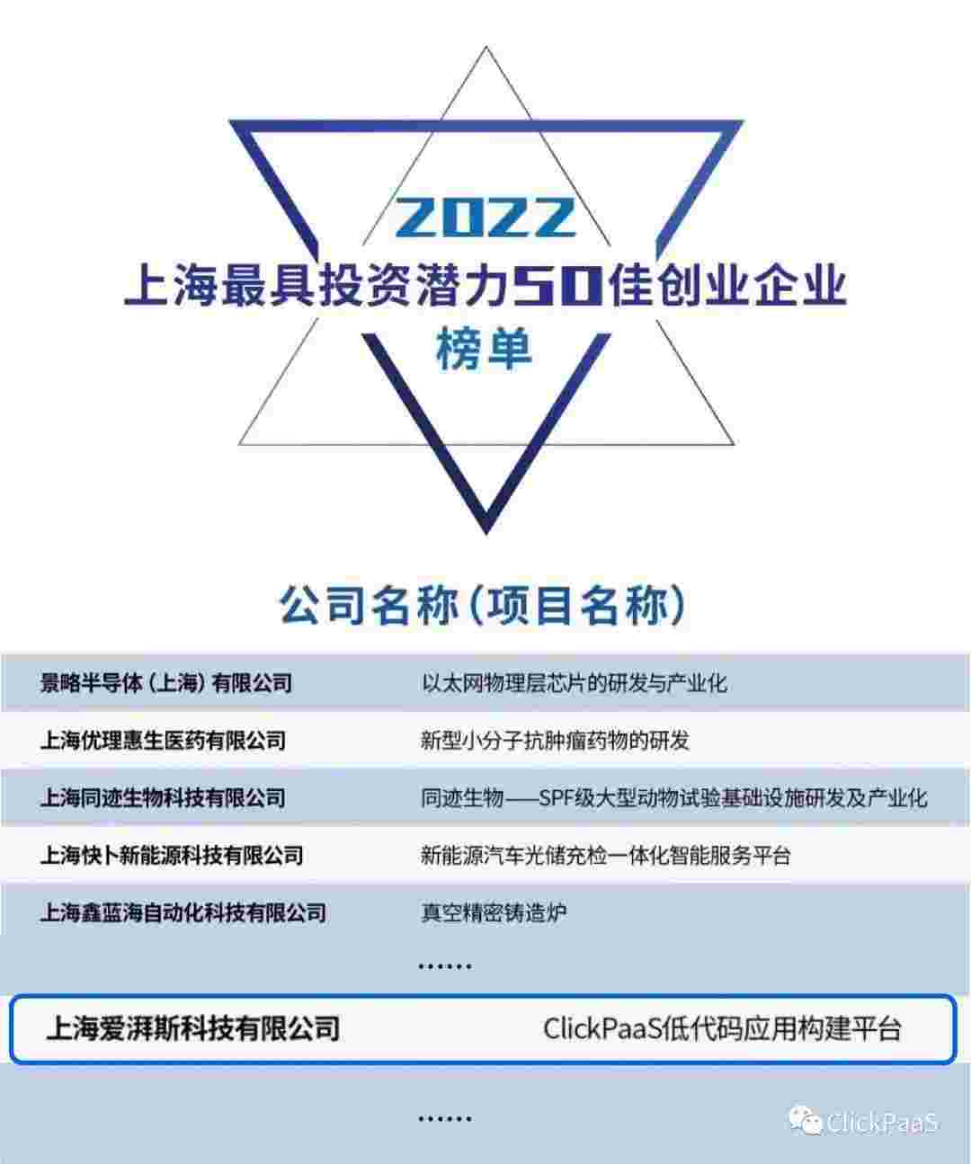 VIVO钱包 作为国内低代码PaaS平台的领军企业,,,,,,,与120家创企入围角逐。。。。期间接受了来自德同资本、、、、、、、、、、领中资本等知名投资机构的10位投资人组成专家评委团的背靠背盲选。。。。。。。。。并最终入围“2022上海最具投资潜力50佳创业企业”榜单,,,,,,,,,,被列入“上海市重点培育创业企业库”。。。。。。。。。。。